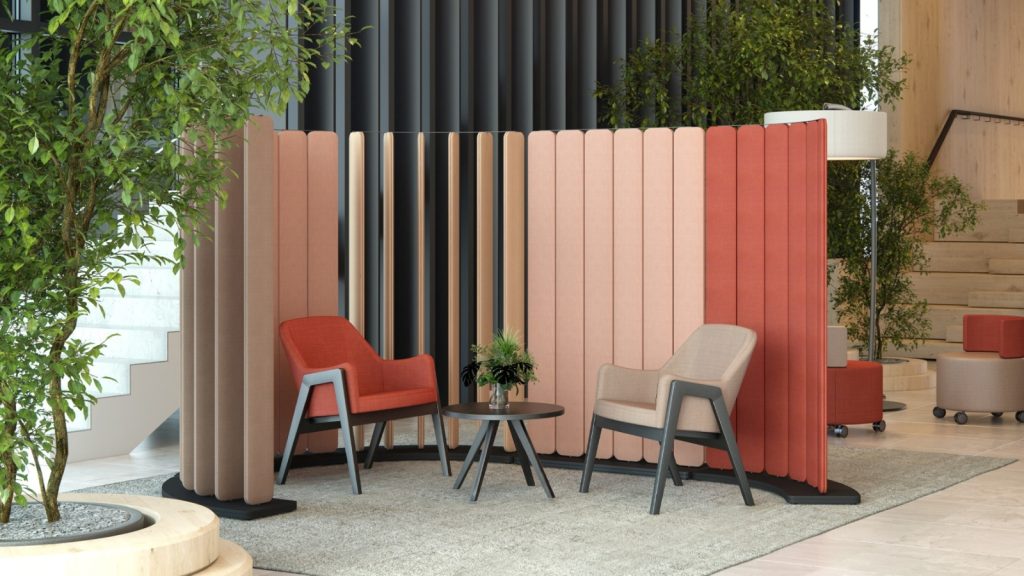 Modular pods designed for commercial environments, offering private meeting spaces with integrated lighting and ventilation.