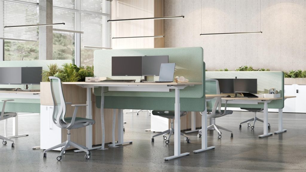 Height-adjustable desks that allow seamless transition between sitting and standing, promoting ergonomic comfort.
