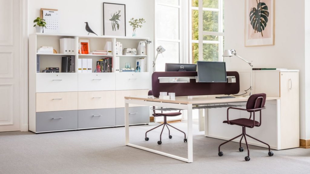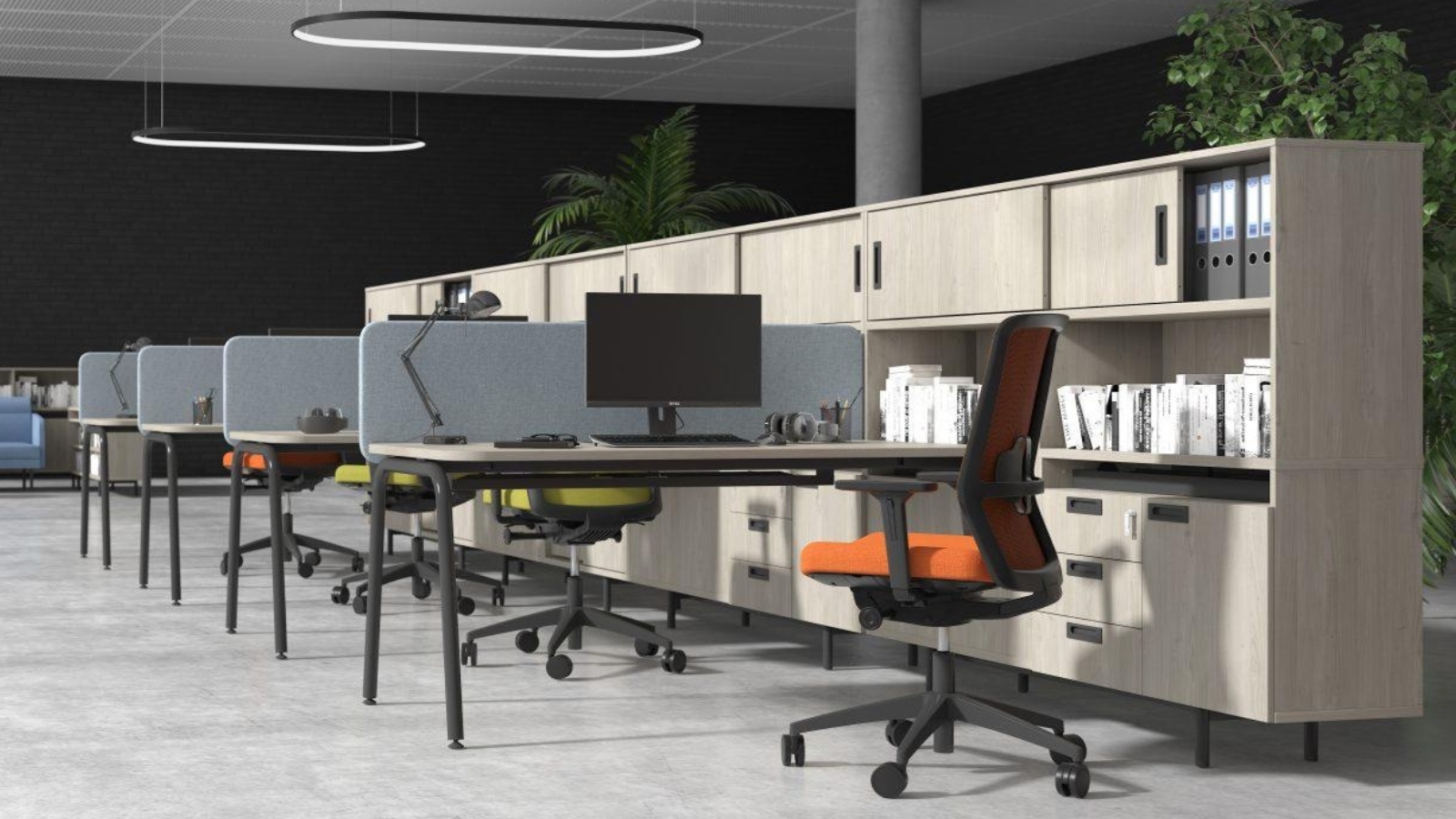 Workstations that integrate desks with storage and cable management, creating organized and productive work areas.