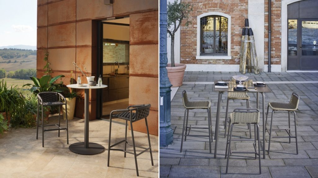Outdoor barstools designed for poolside bars and patio counters, built to resist weathering and fading.