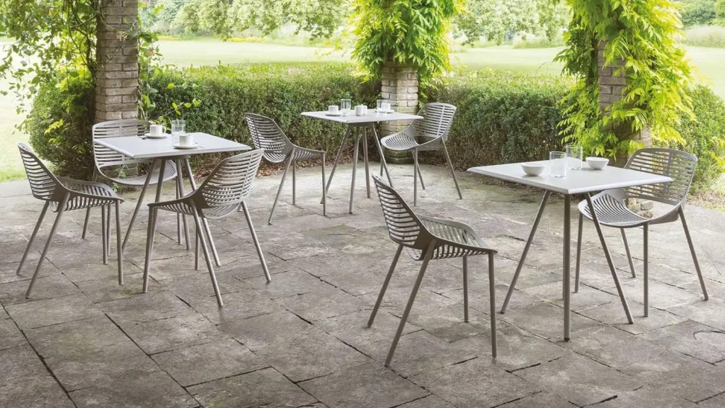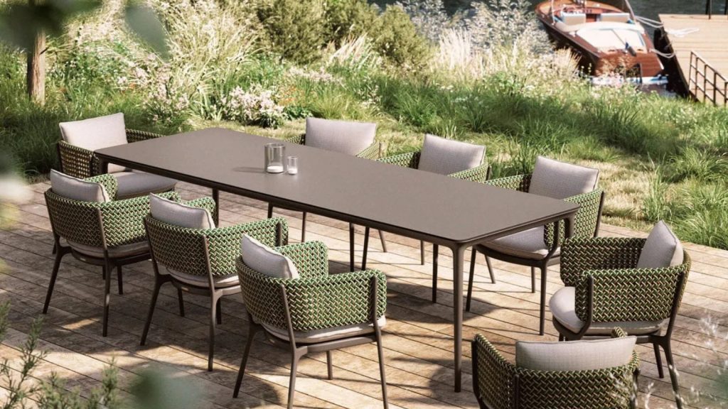 Dining tables engineered for the outdoors, available in various sizes and materials to suit any garden or terrace.