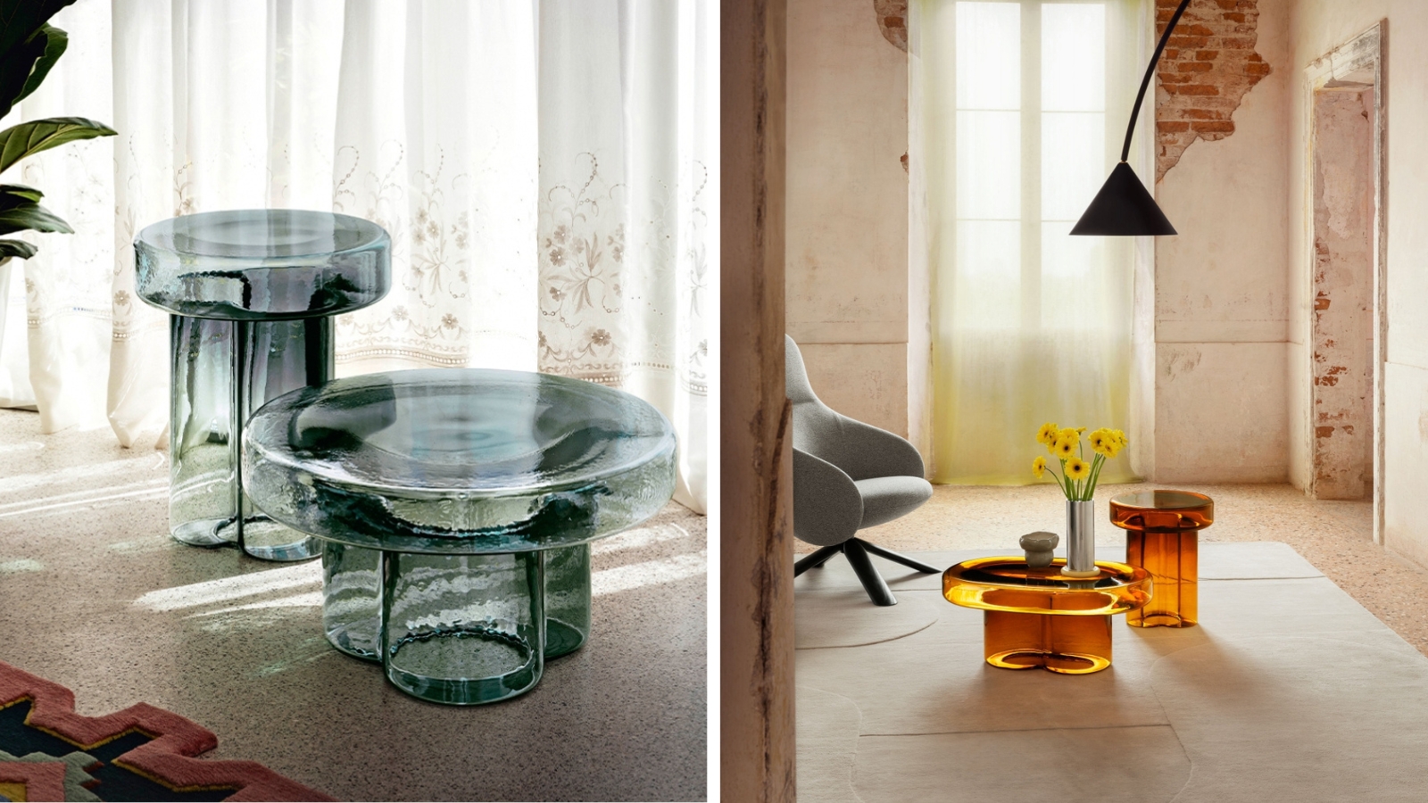 Finishes/Colors: Amber Blown Glass, Petrol Green Blown Glass