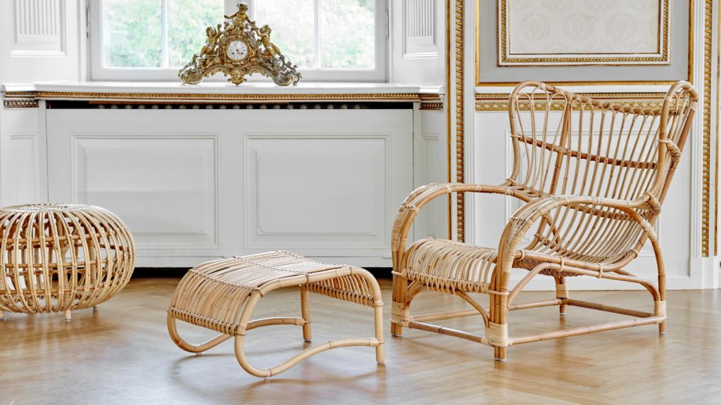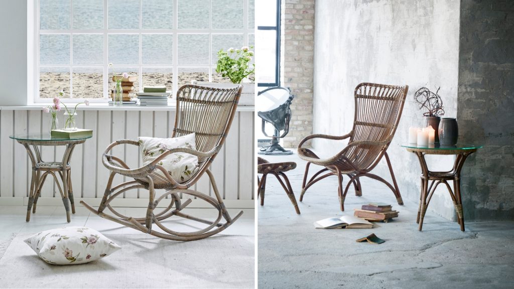 Rattan armchairs with comfortable cushions and woven frames, bringing casual elegance to sunrooms and verandas.