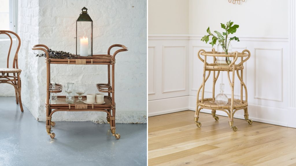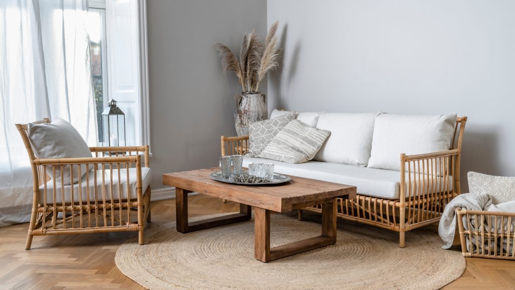Coffee and side tables with rattan frames and wood or glass tops, adding a natural touch to any space.